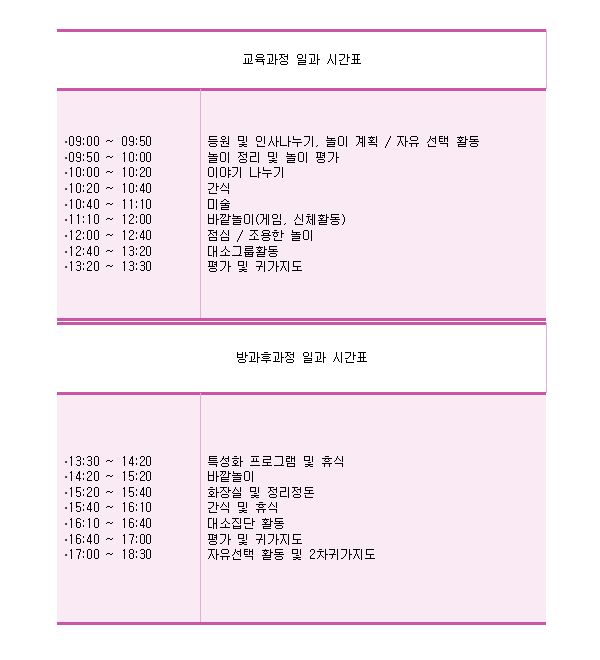 > 교육소개 > 일간운영계획